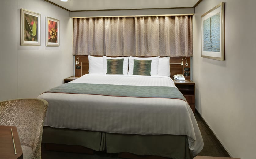 Two lower beds convertible to one queen-size bed—our signature Mariner's Dream™ bed with plush Euro-Top mattresses, premium massage shower heads and a host of amenities are featured in these comfortable staterooms.