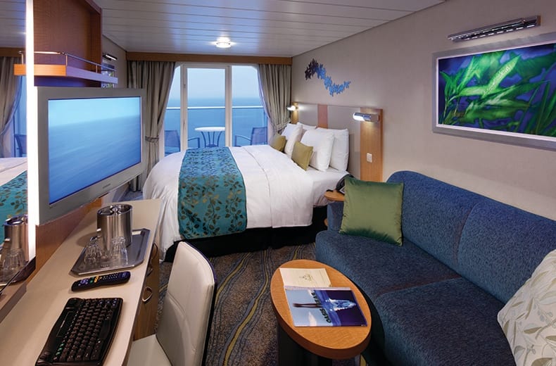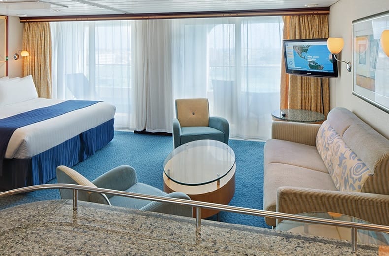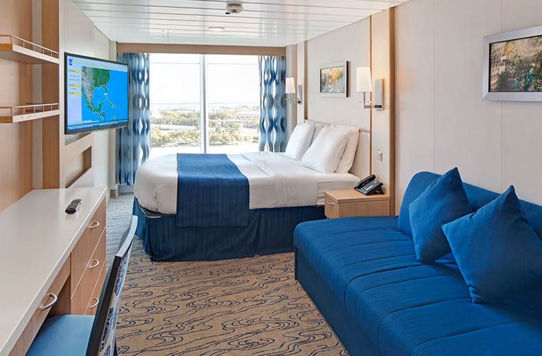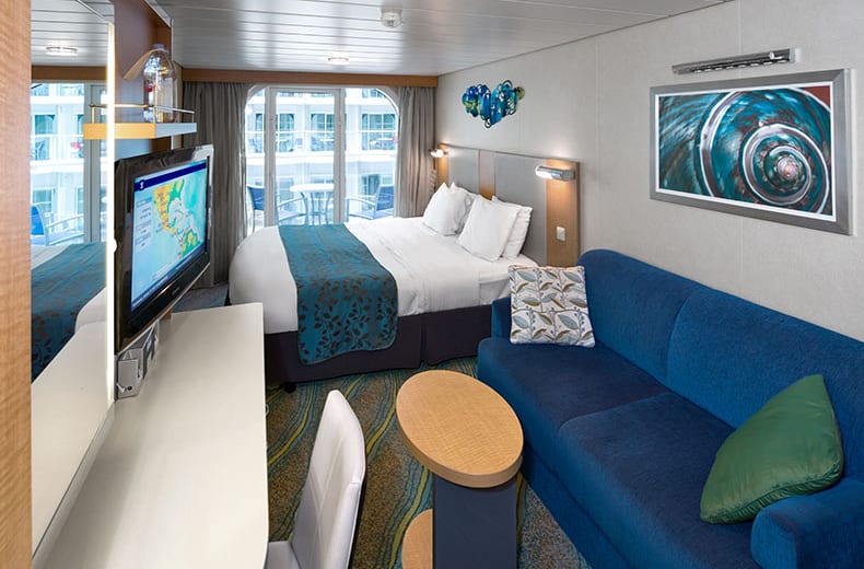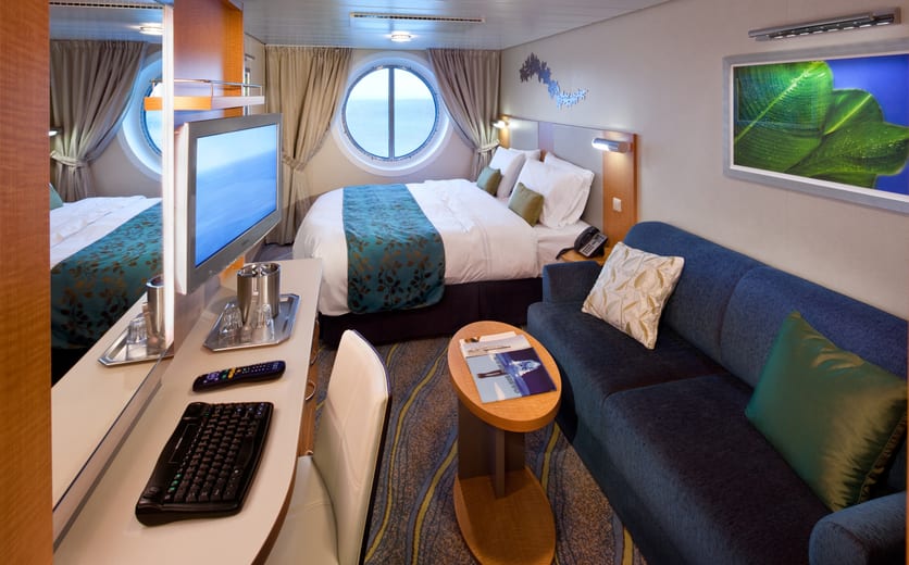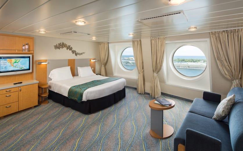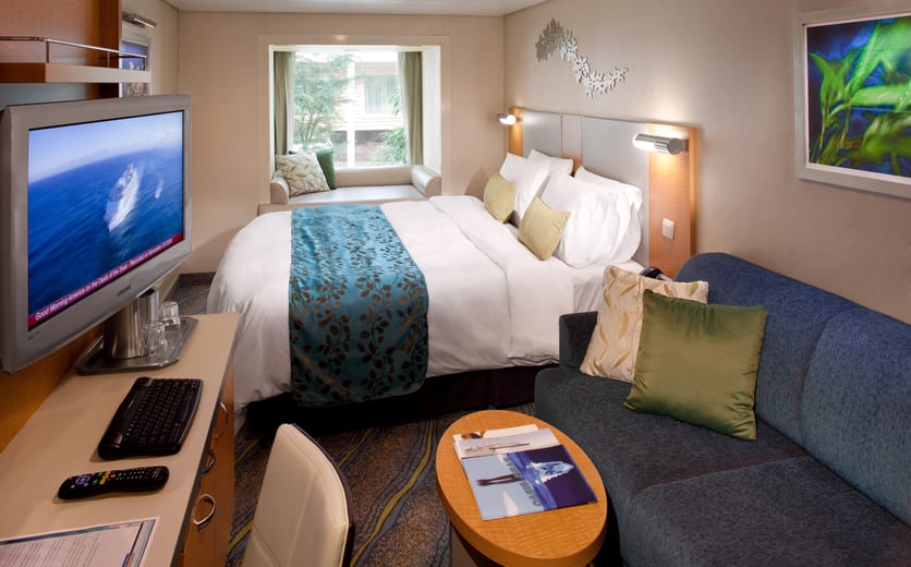These spacious staterooms accommodate four with their twin beds and convertible sofa.