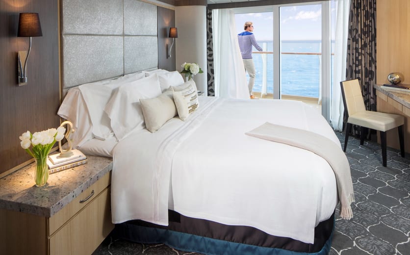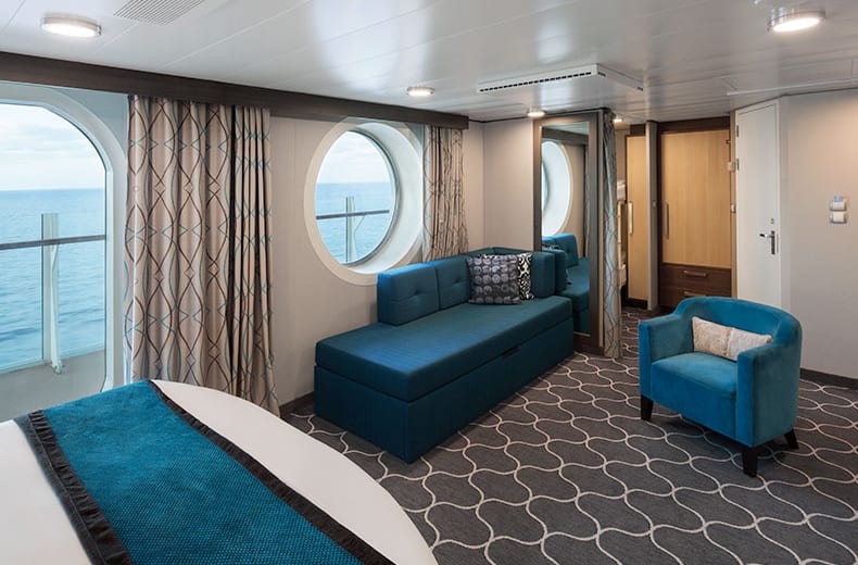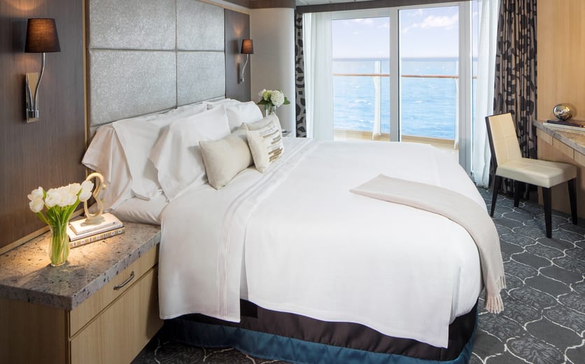 Enjoy beautiful views of exotic ports, landscapes, seas and skies from your large private balcony.