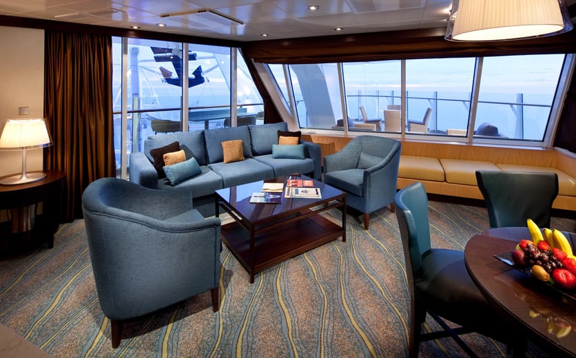 These spacious staterooms accommodate six in twin beds, sofa or Pullman beds and sitting area.