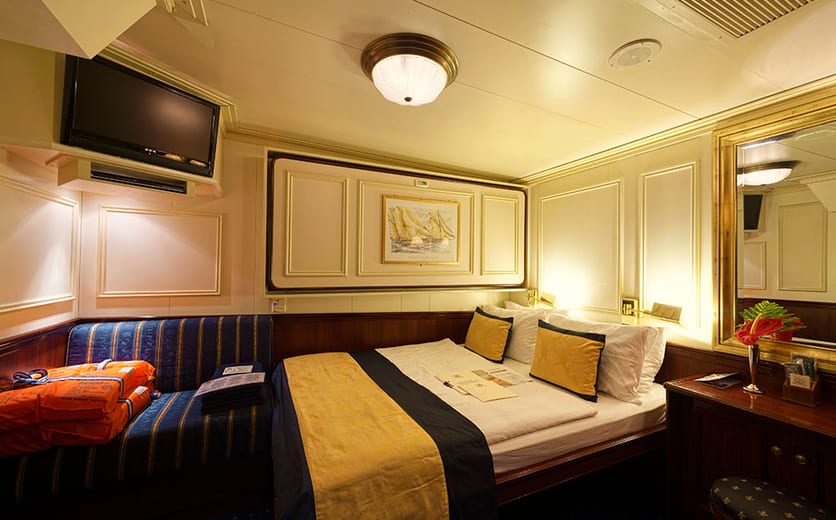Category 6 staterooms feature double/triple beds, and marble bathroom with shower. Each stateroom also benefits from air conditioning, hair dryers, private safe, television, DVD player, telephone and other amenities an experienced traveller has come to expect.