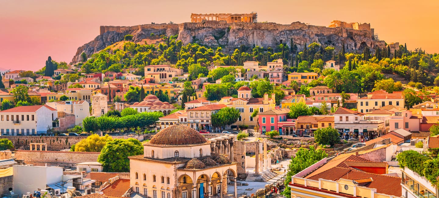 It's no wonder that all roads lead to the fascinating and maddening metropolis of Athens. Lift your eyes 200 feet above the city to the Parthenon, its honey-color marble columns rising from a massive limestone base, and you behold architectural perfection that has not been surpassed in 2,500 years. But, today, this shrine of classical form dominates a 21st-century boomtown. To experience Athens—Athína in Greek—fully is to understand the essence of Greece: ancient monuments surviving in a sea of cement, startling beauty amid the squalor, tradition juxtaposed with modernity. Locals depend on humor and flexibility to deal with the chaos; you should do the same. The rewards are immense. Although Athens covers a huge area, the major landmarks of the ancient Greek, Roman, and Byzantine periods are close to the modern city center. You can easily walk from the Acropolis to many other key sites, taking time to browse in shops and relax in cafés and tavernas along the way. From many quarters of the city you can glimpse "the glory that was Greece" in the form of the Acropolis looming above the horizon, but only by actually climbing that rocky precipice can you feel the impact of the ancient settlement. The Acropolis and Filopappou, two craggy hills sitting side by side; the ancient Agora (marketplace); and Kerameikos, the first cemetery, form the core of ancient and Roman Athens. Along the Unification of Archaeological Sites promenade, you can follow stone-paved, tree-lined walkways from site to site, undisturbed by traffic. Cars have also been banned or reduced in other streets in the historical center. In the National Archaeological Museum, vast numbers of artifacts illustrate the many millennia of Greek civilization; smaller museums such as the Goulandris Museum of Cycladic Art Museum and the Byzantine and Christian Museum illuminate the history of particular regions or periods. Athens may seem like one huge city, but it is really a conglomeration of neighborhoods with distinctive characters. The Eastern influences that prevailed during the 400-year rule of the Ottoman Empire are still evident in Monastiraki, the bazaar area near the foot of the Acropolis. On the northern slope of the Acropolis, stroll through Plaka (if possible by moonlight), an area of tranquil streets lined with renovated mansions, to get the flavor of the 19th-century's gracious lifestyle. The narrow lanes of Anafiotika, a section of Plaka, thread past tiny churches and small, color-washed houses with wooden upper stories, recalling a Cycladic island village. In this maze of winding streets, vestiges of the older city are everywhere: crumbling stairways lined with festive tavernas; dank cellars filled with wine vats; occasionally a court or diminutive garden, enclosed within high walls and filled with magnolia trees and the flaming trumpet-shaped flowers of hibiscus bushes. Formerly run-down old quarters, such as Thission, Gazi and Psirri, popular nightlife areas filled with bars and mezedopoleia (similar to tapas bars), are now in the process of gentrification, although they still retain much of their original charm, as does the colorful produce and meat market on Athinas. The area around Syntagma Square, the tourist hub, and Omonia Square, the commercial heart of the city about 1 km (½ mi) northwest, is distinctly European, having been designed by the court architects of King Otho, a Bavarian, in the 19th century. The chic shops and bistros of ritzy Kolonaki nestle at the foot of Mt. Lycabettus, Athens's highest hill (909 feet). Each of Athens's outlying suburbs has a distinctive character: in the north is wealthy, tree-lined Kifissia, once a summer resort for aristocratic Athenians, and in the south and southeast lie Glyfada, Voula, and Vouliagmeni, with their sandy beaches, seaside bars, and lively summer nightlife. Just beyond the city's southern fringes is Piraeus, a bustling port city of waterside fish tavernas and Saronic Gulf views.