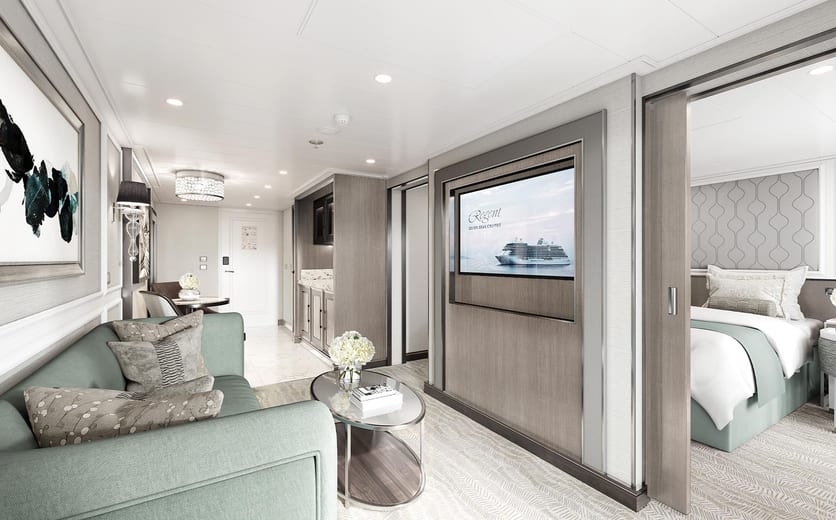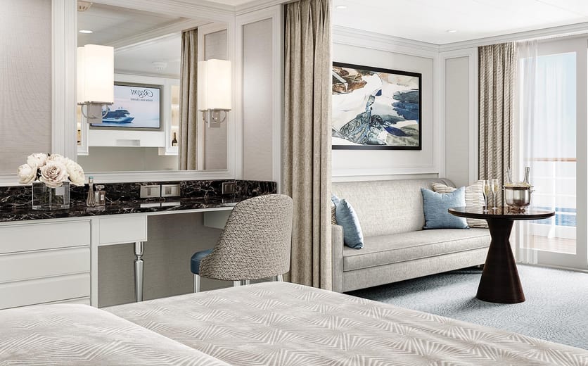 The suite pictured may differ from the suite booked, as layouts and designs vary by ship, deck, and suite location.