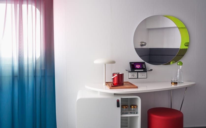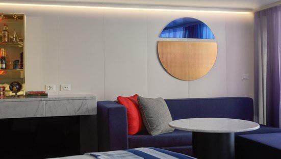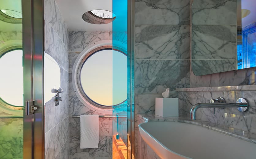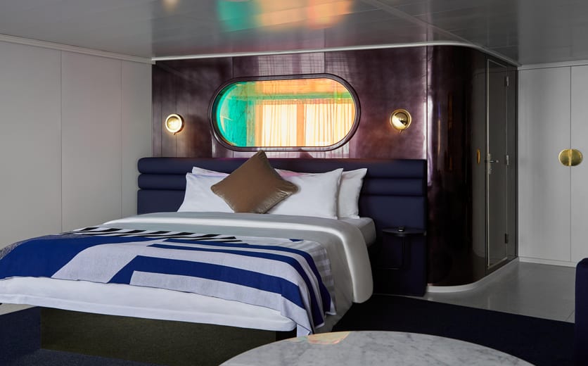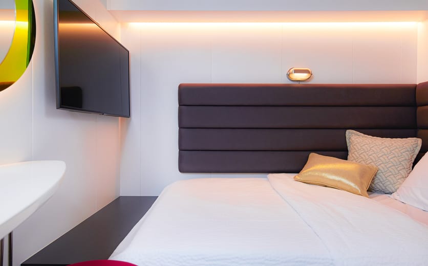 Complete with nautically inspired brass and leather finishings, Sailors will enjoy this sensory and responsive∘ clever cabin. Just pick up the personal tablet to adjust the mood lighting, music controls, movie streaming or even one-touch room service.