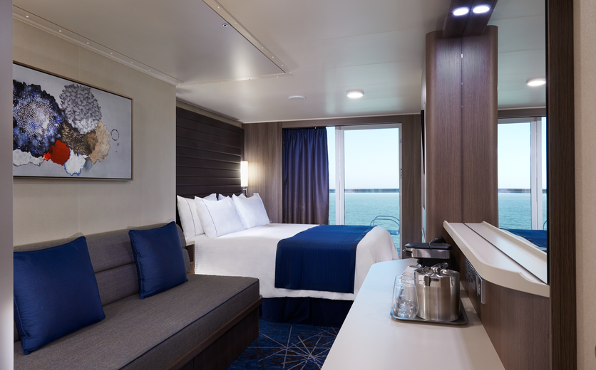 These staterooms offer incredible views from the balcony, two lower beds that convert to a queen-size bed and additional bedding to sleep one or two more.
