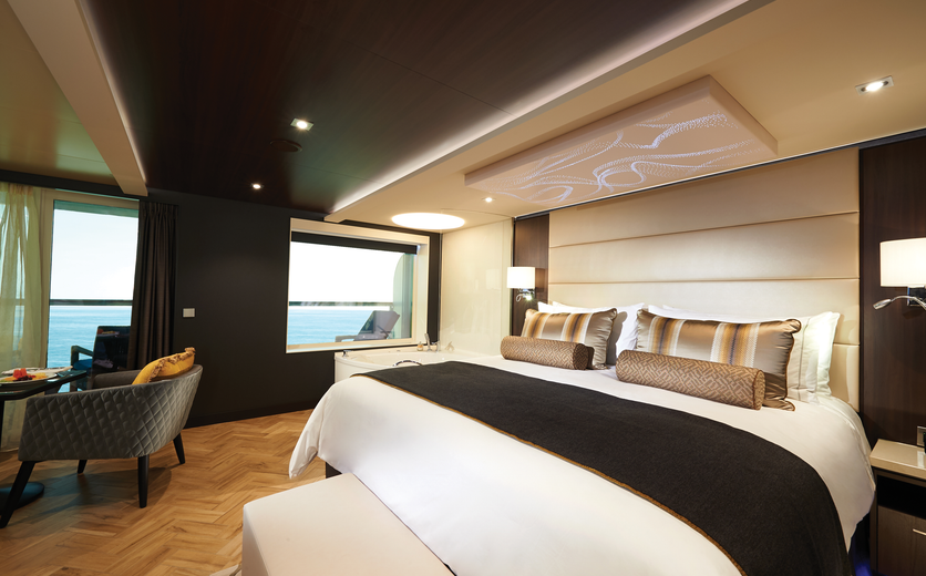 These staterooms feature tranquil spa décor and include two lower beds that convert to a queen-size bed, a single sofa bed, easy access to the adjacent Mandara Spa and fitness centre, as well as complimentary access to the Thermal Suite during regular Spa hours.
