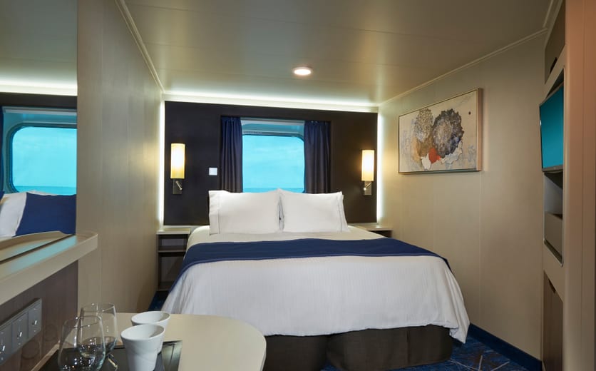 Perfect for families, most of these staterooms are near the kids' area and include two single beds that convert to a queen and additional bedding that can accommodate up to three additional guests. Sleeps up to five.