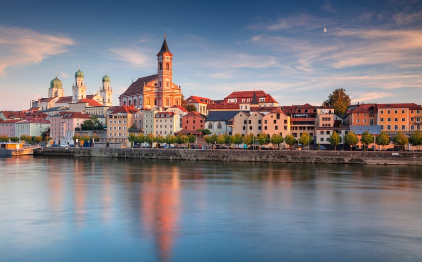 Passau is a German city located in the Southeast of Germany on the Austrian border. It is situated at the confluence of the rivers Danube, Inn and Ilz. The Three Rivers City, as it’s also known, is unique for its three contrasting currents of blue, green and black. Old Town of Passau is home to towering buildings of striking architecture: the majestic fortress Veste Oberhaus, the Pilgrimage Church Mariahilf and St Stephen's Cathedral. Many of Passau’s attractions can be found in this area, including the New Bishop’s Residence, the Gothic Town Hall, as well as many churches and museums. Visitors can stroll along the riverfront promenades and romantic lanes whilst enjoying the picturesque landscape. For modern art, The Museum of Modern Art and Glass Museum Passau are recommended as they offer something a bit different. Theatre and cabaret are a popular evening pastime, with performances at the former Prince Bishopric Theatre or some lively cabaret and Jazz at the Scharfrichterhaus. Visitors will also find many traditional local Bavarian and Austrian cafes and restaurants offering a cosy atmosphere with home cooked food from local produce.