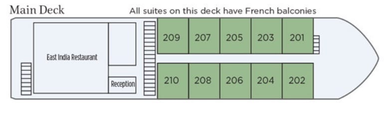 Guests staying in the Maharaja Suites will receive daily butler service, laundry service, one-hour spa treatment (one per person, per suite), bottle of wine upon embarkation, and evening canapés. As well as this, guests will be pampered with a deep soaker tub with lattice-screened window, in-suite dining, and a scented bath.