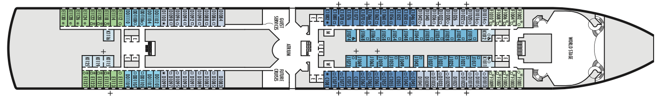 These staterooms feature spa amenities such as yoga mats and access to spa treatments from the Greenhouse Spa & Salon. Filled with light from floor-to-ceiling windows overlooking a private verandah, these staterooms include a sitting area, two lower beds convertible to one queen-size bed—our Signature Mariner's Dream™ bed with plush Euro-Top mattresses, and bath tub with premium massage showerheads.