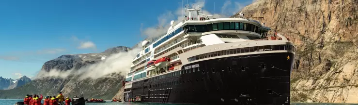 Serving as your floating base camp to some of the world's most breathtaking landscapes - MS Fritdjof Nansen is at the forefront of sustainable exploration. As one of two hybrid ships within the fleet, the innovative sustainable technology reduces the ship's fuel consumption and CO2 emissions by up to 20%. The rugged scenery will be reflected inside the ship through the use of Scandinavian materials from nature, such as granite, oak, birch, and wool that invoke a relaxed and comfortable atmosphere in which to unwind. With a host of public spaces including three restaurants, a fitness and wellbeing suite, a state-of-the-art science center, and a two-level indoor/outdoor Observation Deck. It is an ideal place to scan the scenery as you explore the world around you and watch for wildlife with your binoculars.