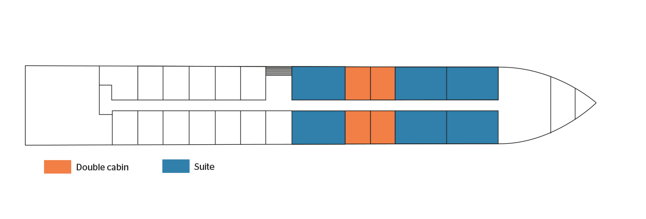 Cabins equipped with private bathroom including restroom and shower, air conditioning, large storage spaces, wardrobe, hairdryer, safe and Satellite TV. They offer great views on the Nile River thanks to their windows.