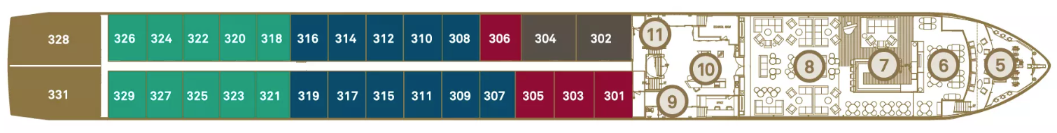 Located on the Sapphire and Diamond Decks they feature a full-length outdoor balcony with the exclusive Scenic Sun Lounge system and are larger than the standard river cruise cabins on Europe’s rivers.