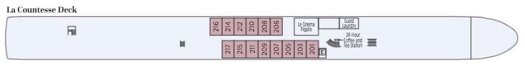 Luxurious riverview stateroom (196 sq ft - 18.2 sq m) with a French balcony.