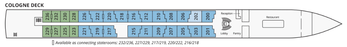 Joining our fleet in 2025, the S.S. Elisabeth, sister ship to the S.S. Victoria, exudes contemporary style with luxe velvet and marble accents, while original artwork adds a touch of Uniworld’s signature boutique style. The S.S. Elisabeth has the largest suites on the rivers of Europe, boasting two Royal Suites that offer an incredible 506 square feet each. Guests can even reserve the adjoining standard Suite next door to create a 759 square foot suite with two bedrooms connected by a separate living room. All the Suites and Signature French Balconies offer abundant space—much higher than standard—with ultra-comfortable, water-facing beds dressed in Uniworld’s fine custom linens. The rest of the ship is equally stunning, featuring a relaxing pool, gym, and massage room. Guests can dine at their choice of three venues: a main dining room, a private venue for smaller groups, and even a sundeck bar.