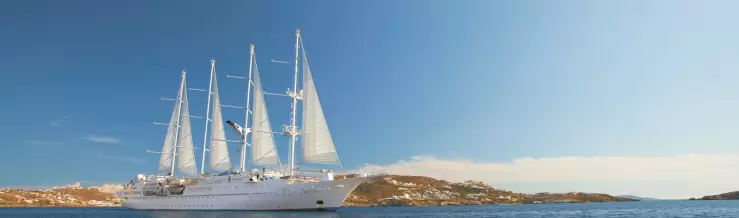 Wind Star is a sleek, 4-masted sailing ship accommodating 148 guests. With four decks and a gross tonnage of 5,307, Wind Star feels like your own private small ship. Wind Star features wide open, teak decks—quite unusual for small ships. Guests will find hidden nooks for private moments giving them a feeling of being on their own private veranda. All staterooms have ocean views, queen beds, flat-screen TV with DVD player, and Bose SoundDock speakers for Apple iPods. The Owner’s Suite includes a sitting area. Wind Star offers two primary dining venues. Amphora restaurant offers gourmet, course-by-course cuisine in the evenings and Veranda restaurant offers casual buffet and full-service dining for breakfast and lunch. All dining is open seating. And, for dining under the stars, make a reservation for Candles which features steaks and skewers. Wind Star amenities include: WindSpa, Watersports Platform, Lounge, Library, Pool, and Hot Tub.