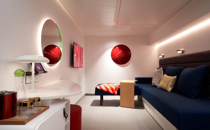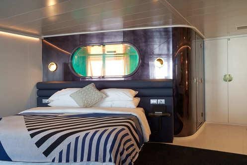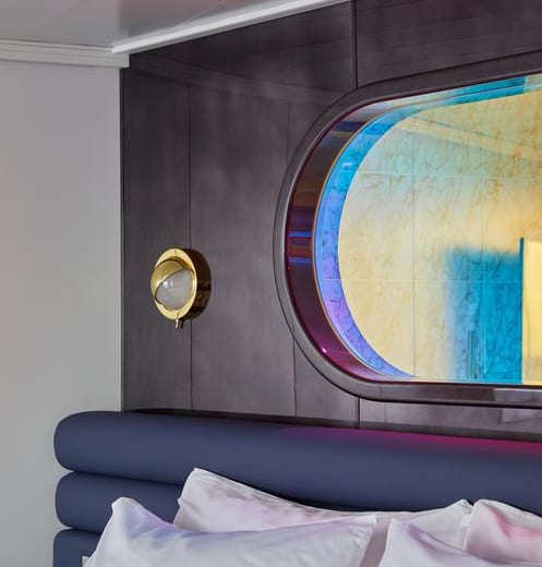 Complete with nautically inspired brass and leather finishings, Sailors will enjoy this sensory and responsive∘ clever cabin. Just pick up the personal tablet to adjust the mood lighting, music controls, movie streaming or even one-touch room service.