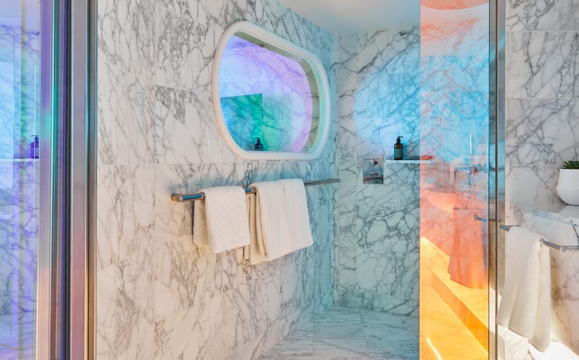 How you and your celeb friends already live (lucky you)... but better. These suites are the most exclusive, top-tier luxury living on board — granting you prime access, 24/7 agent attention, a bottomless in-room bar, complimentary parking at PortMiami’s Terminal V, and more. Our Tom Dixon-designed suites boast large marbled bathrooms with Peek-a-Boo showers, hand-woven terrace hammocks, and outdoor Peek-a-View showers for when rinsing off requires a little help from the moonlight.
