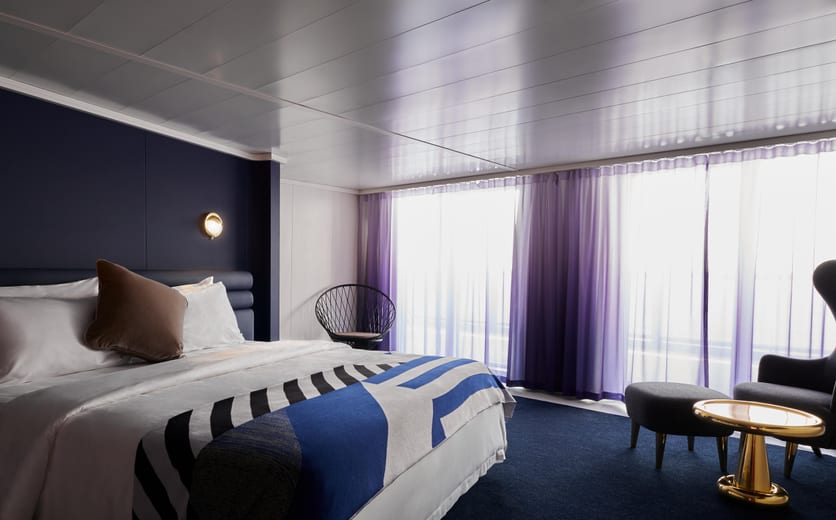 All the comforts and amenities of The Sea Terrace with a slightly limited view because, well, shippy stuff. Otherwise, this sensory and responsive clever cabin has it all from nautically inspired brass∘ and leather finishings to the personal tablet, intuitive mood lighting, music controls, movie streaming and one-touch room service.