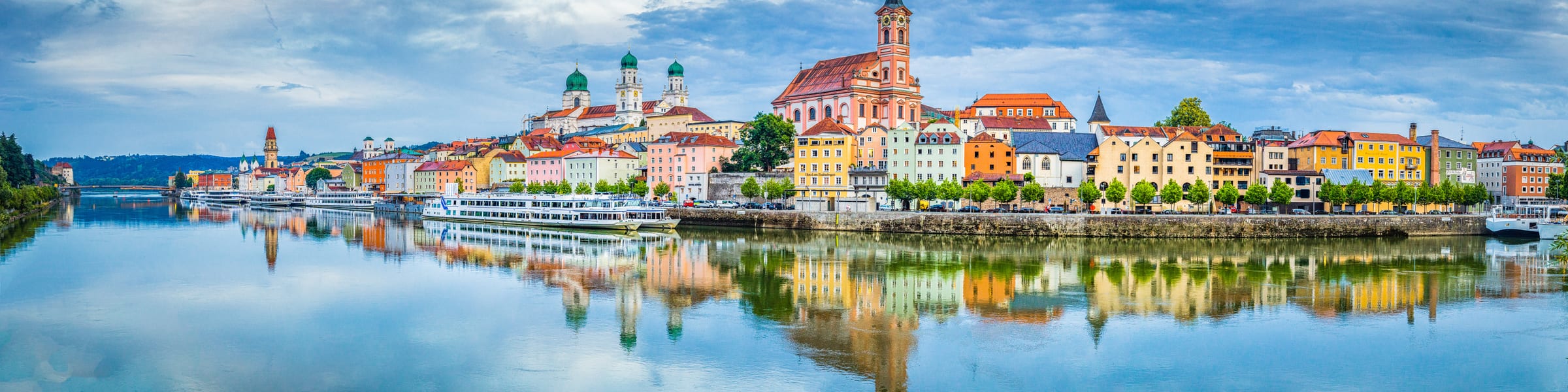 Passau is a German city located in the Southeast of Germany on the Austrian border. It is situated at the confluence of the rivers Danube, Inn and Ilz. The Three Rivers City, as it’s also known, is unique for its three contrasting currents of blue, green and black. Old Town of Passau is home to towering buildings of striking architecture: the majestic fortress Veste Oberhaus, the Pilgrimage Church Mariahilf and St Stephen's Cathedral. Many of Passau’s attractions can be found in this area, including the New Bishop’s Residence, the Gothic Town Hall, as well as many churches and museums. Visitors can stroll along the riverfront promenades and romantic lanes whilst enjoying the picturesque landscape. For modern art, The Museum of Modern Art and Glass Museum Passau are recommended as they offer something a bit different. Theatre and cabaret are a popular evening pastime, with performances at the former Prince Bishopric Theatre or some lively cabaret and Jazz at the Scharfrichterhaus. Visitors will also find many traditional local Bavarian and Austrian cafes and restaurants offering a cosy atmosphere with home cooked food from local produce.